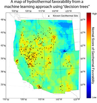 There are many machine learning approaches that can be used to correlate geologic datasets with the presence of hydrothermal systems, but USGS geologists have found that using approaches based on “decision trees,” akin to flowcharts with decisions dependent upon geologic conditions in the datasets, perform better than other forms of machine learning. More complex machine learning approaches generally need thousands of training sites for learning compared to decision trees. This is an important consideration because the number of known hydrothermal systems is relatively few. Simpler machine learning approaches do not account for the fact that not all hydrothermal systems are alike, so there is no one set of geologic conditions that will indicate the presence of a hydrothermal system. The decision tree approach, however, can identify “Goldilocks” conditions, which are qualities in the geologic datasets that are not too much, not too little, but just right to foster a hydrothermal system.